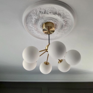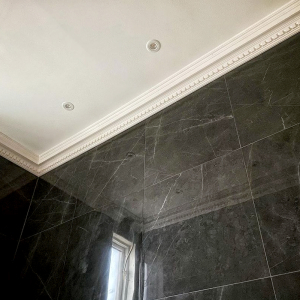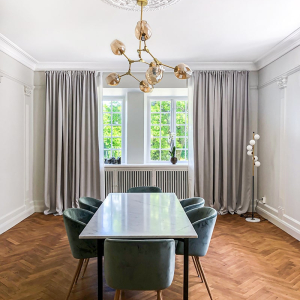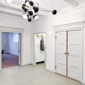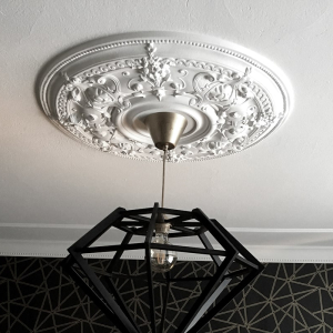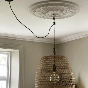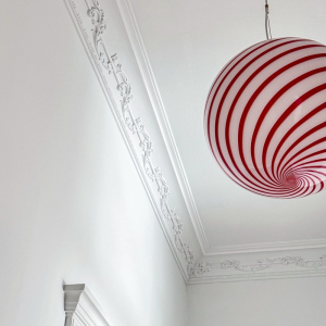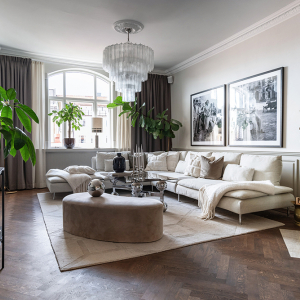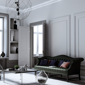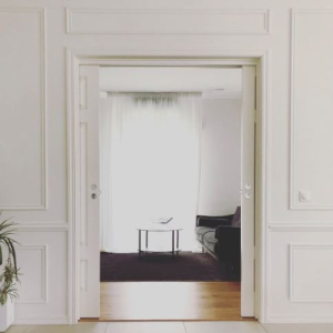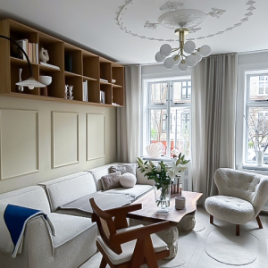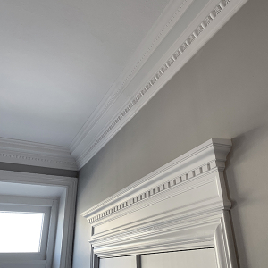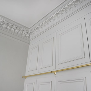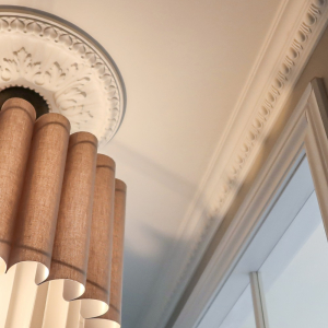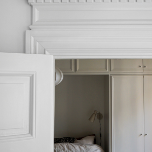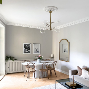 <p>Sekelskifteslägenhet i i Stockholm med taklist <a href="https://www.d-cor.se/produkter/taklister/taklist-z105">Z105 </a>, en maffig och dekorativ taklist för större rum med vältilltagen takhöjd.</p>