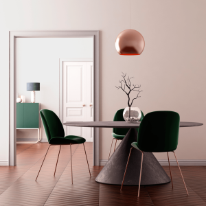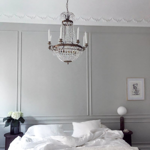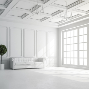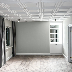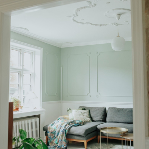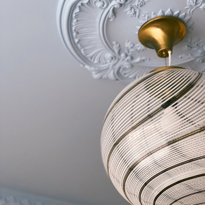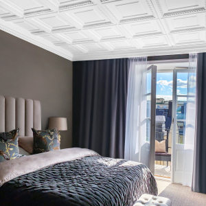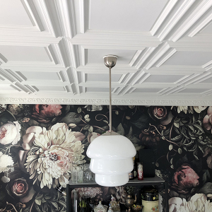 Du skapar enkelt ett kassetttak med hjälp av våra takplafonder! Här syns taklist Z144 & takplafond K250/K213. Tips: taklist Z144 finns flera olika storlekar, se därför även Z130, Z143 och Z145. Design av inredaren Louise Hjort.