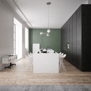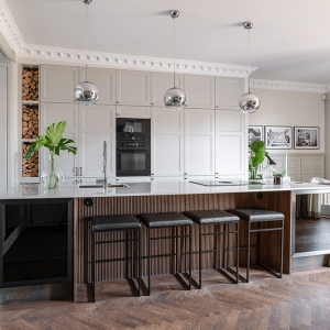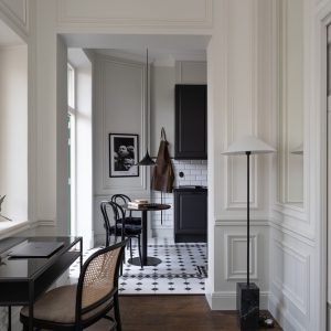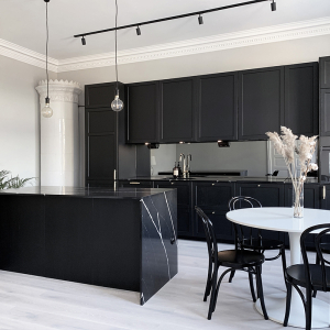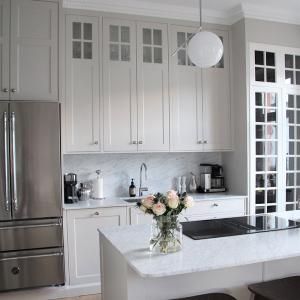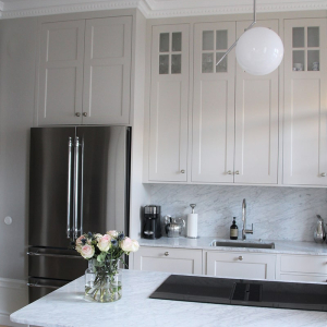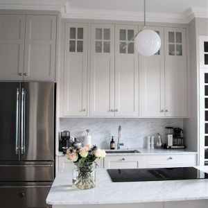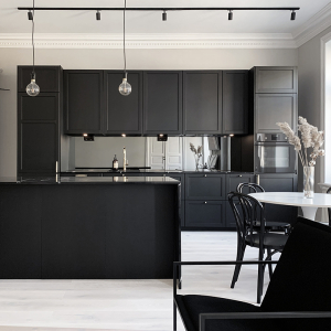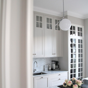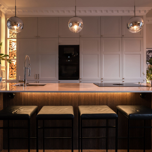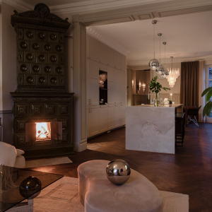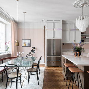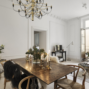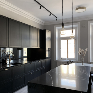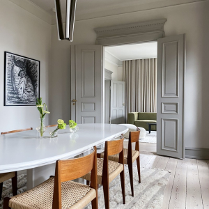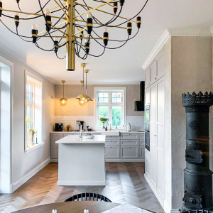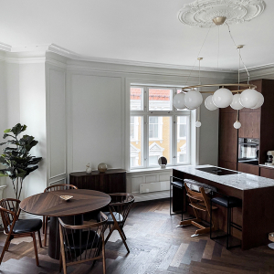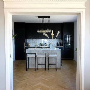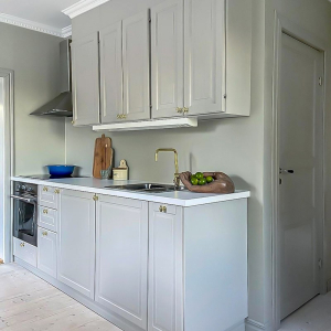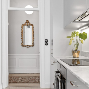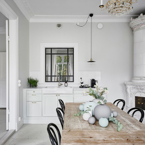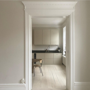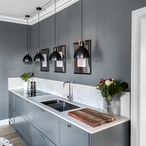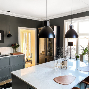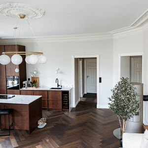 Sekelskifteslägenhet i Göteborg. Här har ägaren skapat ett stilrent och modernt kök i en sekelskifteslägenhet från 1906. Den stilrena taklisten GK31 har som klossar och passar fint in i sammanhanget. Gillar du denna modell ska du även ta en titt på taklisterna Z143 och Z144. Se fler bilder från köket här.