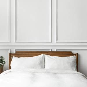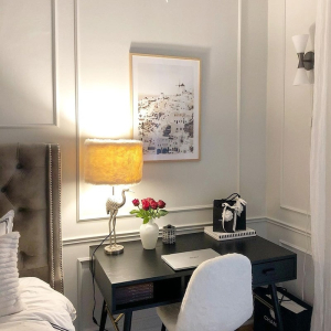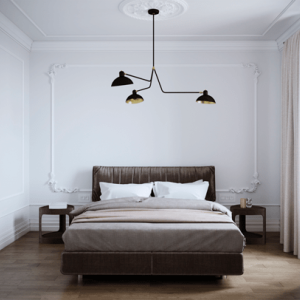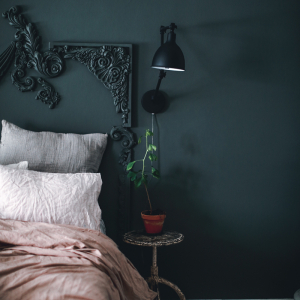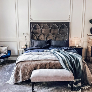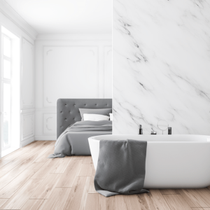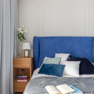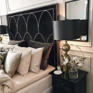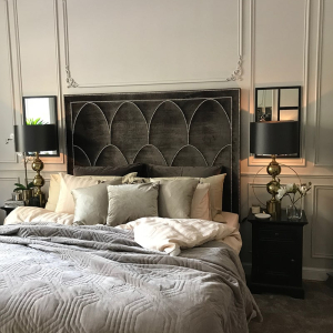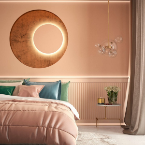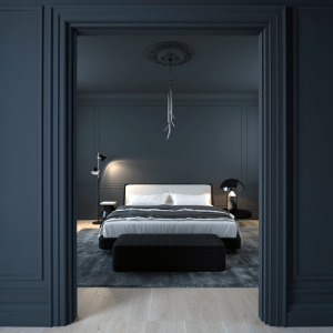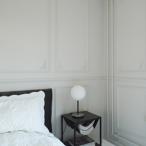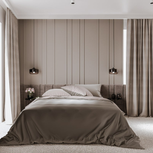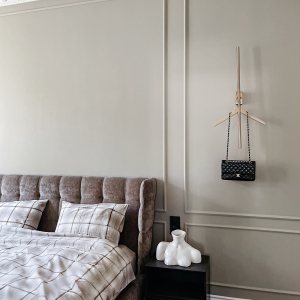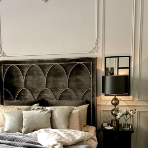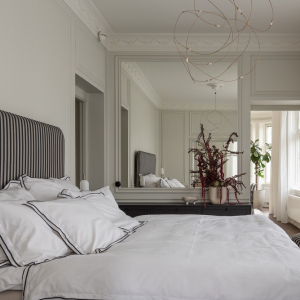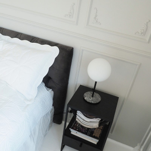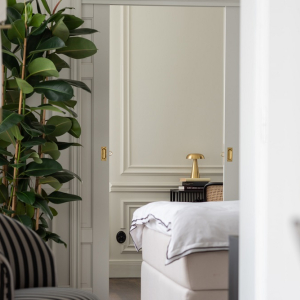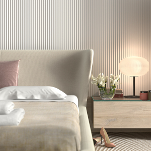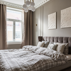 Rofyllt och elegant sovrum med den lite större vägglisten Z364 som bröstlist och vägglist Z354 som väggramar.