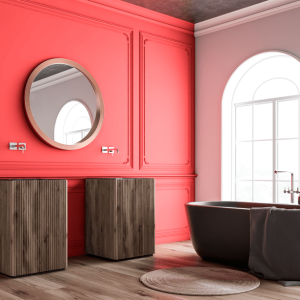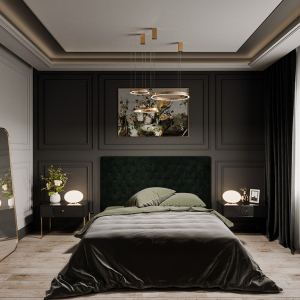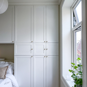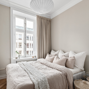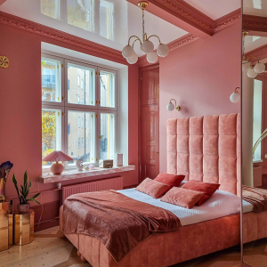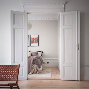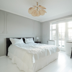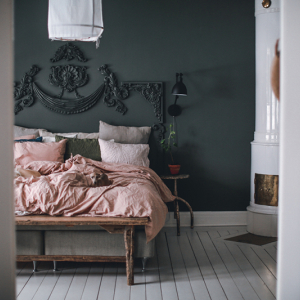 <p>Rofyllt och elegant sovrum med den lite större vägglisten Z364 som bröstlist och vägglist Z354 som väggramar.</p>