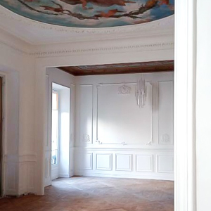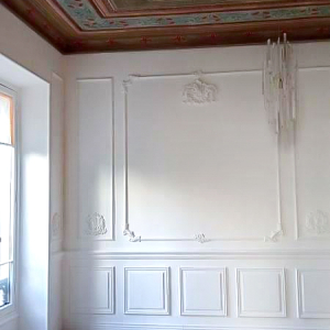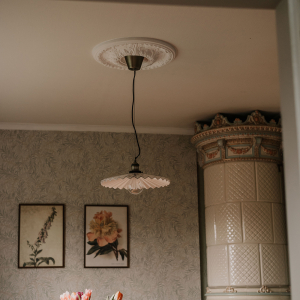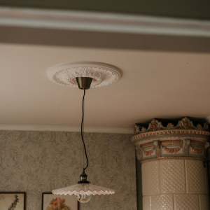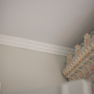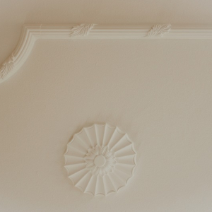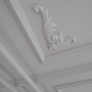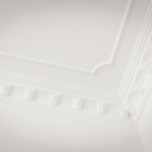 <p>I taket syns vägglist Z320, hörnlist HL320-2 samt ornament A670. Under fönster ornament A670.</p>