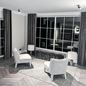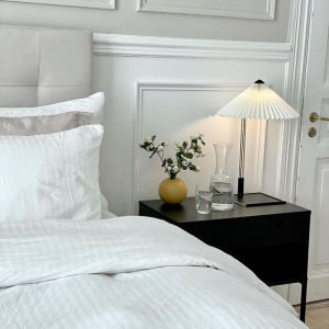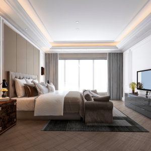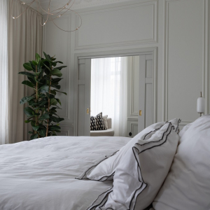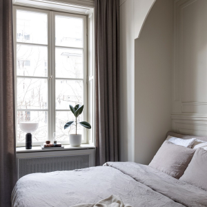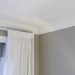 <p>Med en kornisch gömmer du enkelt gardinfästet och skapar en lyxig hotellkänsla. Skapa stilen i bilden med <a href="https://www.d-cor.se/produkter/kornisch/kornisch-ql026">kornisch QL026</a> och <a href="https://www.d-cor.se/produkter/vagglister/vaegglist-z352">vägglist Z352</a>.</p>