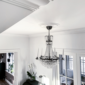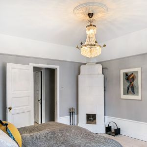 Sekelskifteslägenhet i i Stockholm med taklist Z105 , en maffig och dekorativ taklist för större rum med vältilltagen takhöjd.