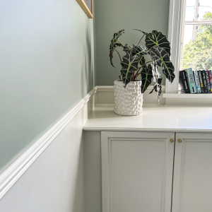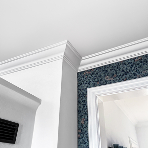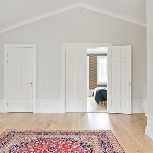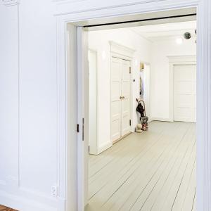 Ett enkelt DIY-projekt för att skapa höga golvlister är att använda vägglister. På så sätt kan du behålla den befintliga golvlisten och ändå få till en imponerande och passande list för ditt sekelskifteshem. Vägglisten, som placeras en bit ovanför den befintliga golvlisten, är modell Z357.