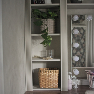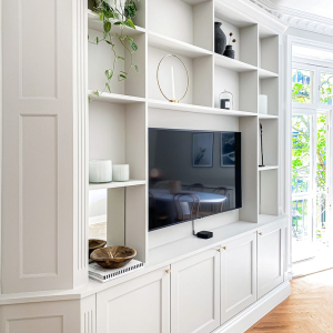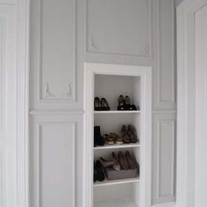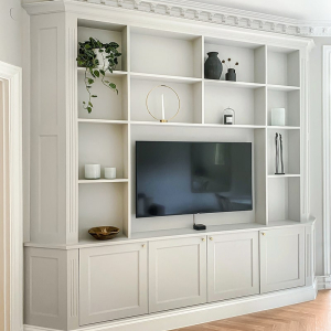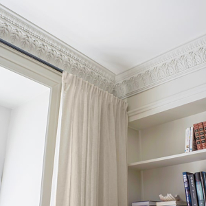 <p>Klassisk taklist, <a href="https://www.d-cor.se/produkter/taklister/taklist-z103">Z103</a>, ovanför platsbyggd bokhylla. Taklisten finns i flera storlekar och passar i sekelskifteslägenheter med rejäl takhöjd.</p>