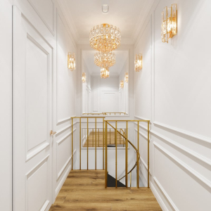 Den här hallen finns i ett 1920-tals hus. Taklisten är Z152 och finns även i mindre modeller som Z111 och 139.
