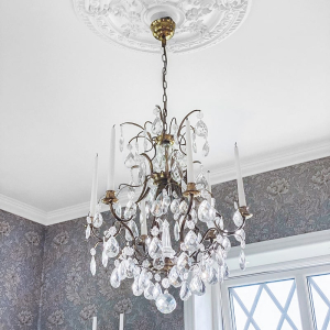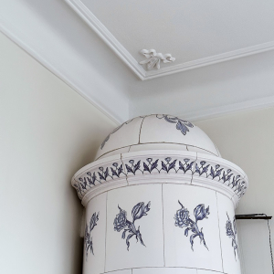 I taket syns vägglist Z320, hörnlist HL320-2 samt ornament A670. Under fönster ornament A670.