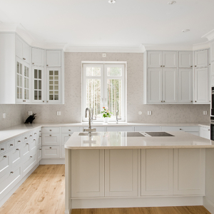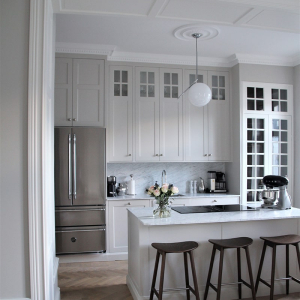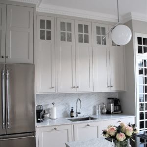 Vackert kök i sekelskifteslägenhet i Stockholm. Taklisten är GK31.