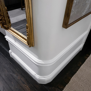 <p>Ett enkelt DIY-projekt för att skapa höga golvlister är att använda vägglister. På så sätt kan du behålla den befintliga golvlisten och ändå få till en imponerande och passande list för ditt sekelskifteshem. Vägglisten, som placeras en bit ovanför den befintliga golvlisten, är modell Z357.</p>