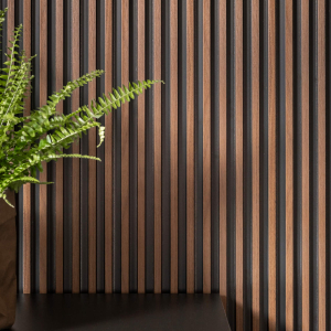 Väggpanel 14-002 med vägglist Z390 ovanför panelen. Ett enkelt sätt att göra egna väggpaneler snabbt och till ett lågt pris.