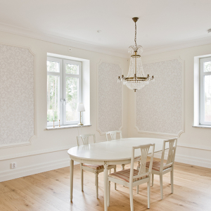 Bröstlist Z369<p>Panel 14-002<br />Ornament Z515 och Z546<br />Vägglist Z350<br />Vägglist mellanstycke HL350-6<br />Hörnlist HL350-2<br />Bröstlist Z369</p> <p></p>
