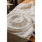 Takrosett används i takets centrum som dekoration. Om lampkrok monteras finns utrymme i takrosetten för att gömma elkablar. Även användbar för montage på vägg, exempelvis för att montera lampetter på.